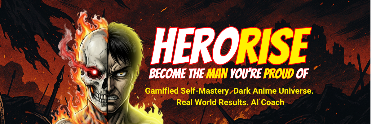 HeroRise covers all four pillars—health, mindset, focus, relationships—all synced to an evolving dark anime story.